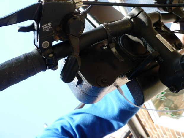 badabing... hecho, ligeramente rociado con pintura de plata para que coincida con mi bici... las baterías van en el mismo lugar que el antiguo sistema, detrás del asiento, uso 6 celdas de nicad de un taladro viejo (aproximadamente tamaño de celda c)... también he añadido un monitor de batería (5quid de la tienda)