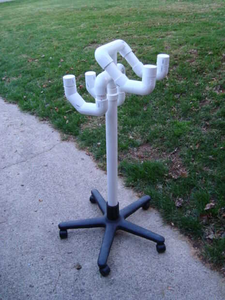 esta construcción solucionado dos problemas para mí; en primer lugar, me permitió un lugar para guardar dos motos cuando no esté en uso, y en segundo lugar, me permitió la libertad de rodar en el garaje/entrada de auto limpieza o necesidad de espacio adicional en el garaje para trabajar en proyectos. Tener un garaje individual, la necesidad de movilidad es de suma importancia. El costo total para esta construcción es bajo $25, excepto la silla de oficina tienda de segunda mano.