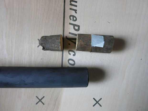 -Corte la parte inferior del extremo más estrecho aproximadamente 1" de la marca. Descartar lo que corta; ahora tiene su enchufe.
