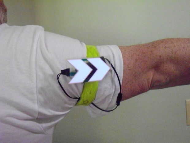 Se basa en un pequeño panel EL disponible en el mercado, a la que vamos a añadir un interruptor de inclinación simple y una banda por lo que puede ser usado en un brazo. Si lo prefiere como alternativa podría coser en la ropa o colocar a la ropa con velcro.