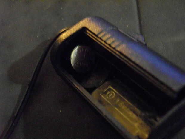 Inserte el final de la primavera (-ve terminal) del compartimento. Asegúrese de que la batería es la forma correcta de ronda. En una célula del AA, el extremo plano es el extremo negativo. En una celda de botón, el plano final es positivo. Así que quieres la 'cabeza' más estrecha contra el resorte y el extremo plano hacia fuera.