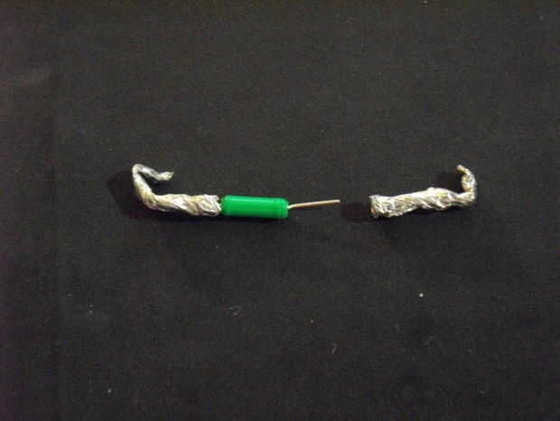 Por lo tanto, cortar una tira de papel cuya anchura es igual a la longitud de la paja que corte y ruede para arriba y gírela para dotarla de un cuerpo. Luego córtalo por la mitad por el medio. Deslice los pernos del sensor de la inclinación de los 2 rollos de papel de plata y tal vez Coloque un pequeño trozo de cinta aislante para mantener unida a estos.