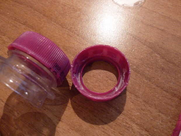 • Cortar el anillo de plástico en el medio. Necesitamos esta parte al ser de plástico transparente para que la luz puede verse en 360 grados.