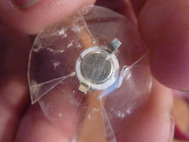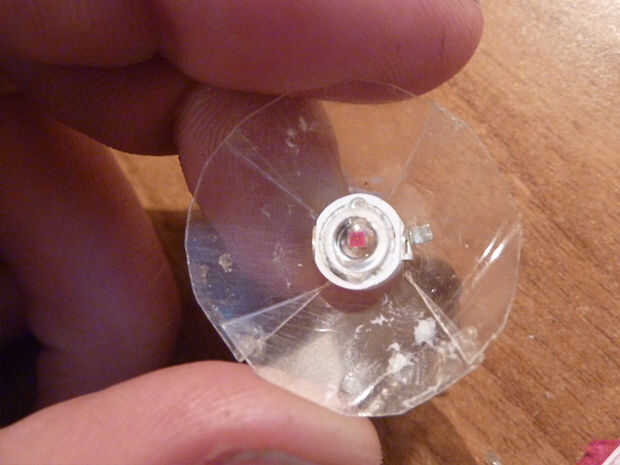 • Con un par de tijeras, corte una cruz sin cortar el centro. Aquí es donde el led va a sentarse. Echa un vistazo en el croquis y las fotos para entender el concepto.