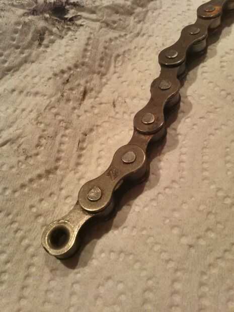 Debe tener un extremo de la cadena que se parece a la foto en el paso anterior (con el pin en ella), y el otro extremo debe verse como en la foto.