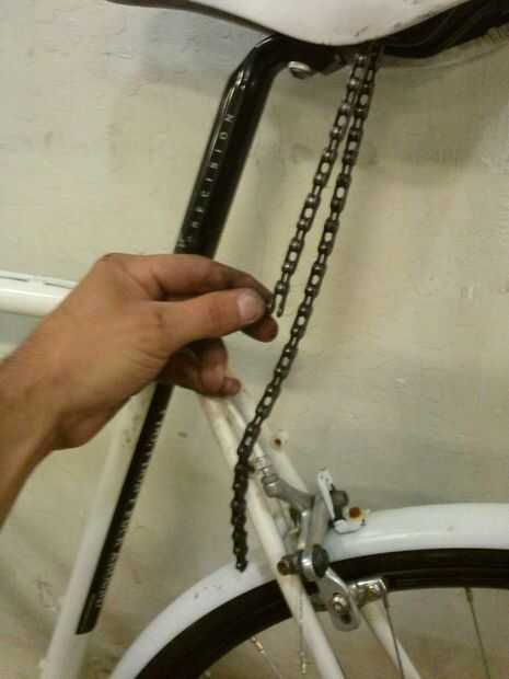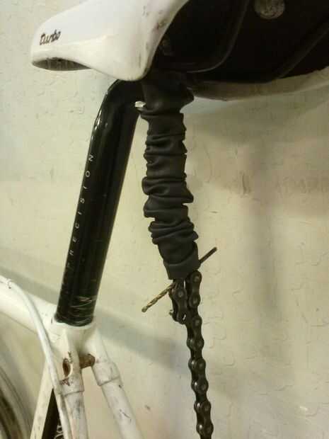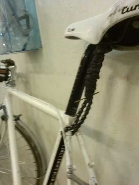 Luego enrolle la cadena alrededor del marco de la bicicleta y conectar la cadena.