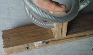 Ahora, marque una línea de cada lado de la madera y quitar, usted debe terminar con un trozo de madera como la foto dos.
