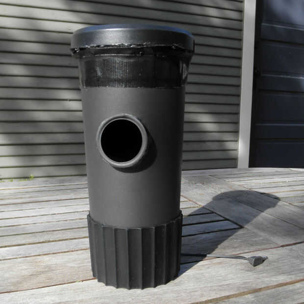Más modificaciones (24/03/14): la electrónica del altavoz bluetooth original ya hackeado me dio cierta pena (mini USB puerto de carga se interrumpió, etc..) .. .so decidí cambiar todo, reconstruir la electrónica con las tripas de otro altavoz portátil (no bluetooth).  También he añadido un tubo bass reflex puerto, de un codo de tubería de plástico en una ferretería.