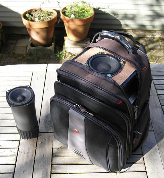 más detalles sobre esta versión aquí). Este sub es un controlador de 4.5 pulgadas en una 8 "x 8" x 4 "bass reflex caja, también alimentado por una batería interna recargable. De todos modos, estoy usando mi iPod classic para reproducir música mientras que andar en bicicleta, y no es un dispositivo habilitado para bluetooth. Es un asunto relativamente sencillo conectar todos los dispositivos juntos en la moto. Cuando tenga que aparcar y encerrar, puedo quitar toda la tecnología vital de la moto y llevar me...no preocupaciones acerca de posibles robos o vandalismo.