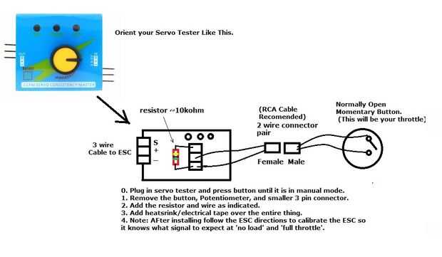 Técnicamente sólo podría utilizar el probador servo como comprados y controlar la velocidad del motor con la perilla pequeña. Pero que sería un diseño terrible del acelerador ya no primavera a velocidad cero si pierde el control, y porque induce el acto de girar la perilla de una baja aceleración en el motor por lo que costumbre swing difícil de volar y el neumático.