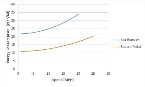 Para ayudar a cuantificar las declaraciones que hice un experimento para medir el rendimiento de la moto con y sin el BoosterPack. Usé un medidor de vatios batería y mi teléfono GPS con la aplicación "Runtastic" para medir la energía consumida, distancia y tiempo, mientras que monté mi monté mi bici en el mismo curso dos veces en sucesión. La primera vez como normal y la segunda vez mientras aumentar. No sólo era el paseo del aumentador de presión más rápido pero luego estaba menos fatigado.