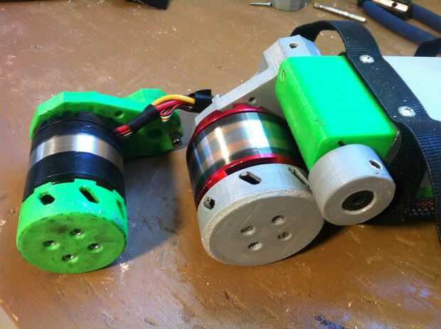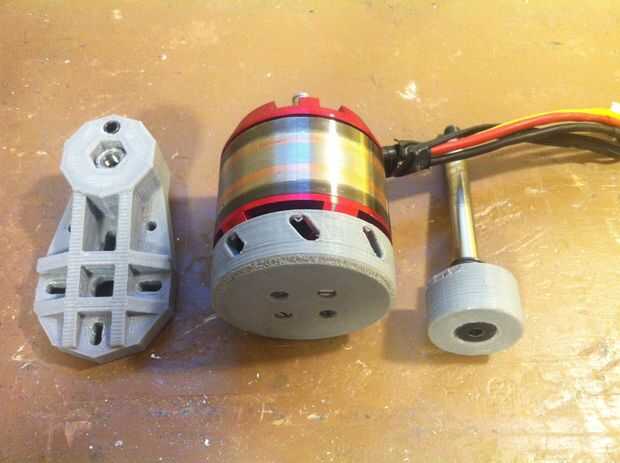 El diseño estándar utiliza un motor de 50mm, pero si imprimes un par piezas adicionales como se muestra en las fotos se puede montar un motor de 60mm para 20-40% más energía! Ya que este motor tiene un diámetro exterior más grande necesita tener una aún menor KV a ' lo hacia abajo ' a la velocidad adecuada para este uso.
