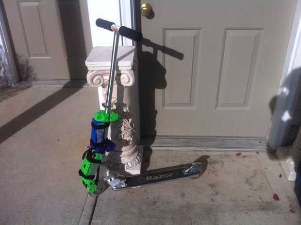Sólo por diversión, me preguntaba si podría configurarse el diseño para funcionar en otros tipos de vehículos. Este yo montado en mi paseo favorito, una kickscooter de tamaño adulto!)