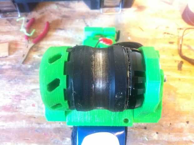 ¿El resultado? Sí puede fijar para arriba, pero no conducir. Las ruedas de poliuretano poco son demasiado resbaladizas para ser agarrado por el motor. Y estoy seguro de que el papel de lija coma esta rueda en el olvido.