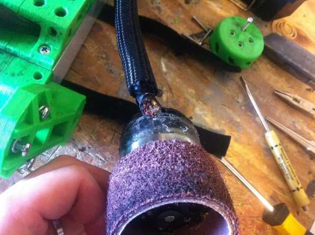 Otra parte interesante de la experiencia del papel de lija era el proceso de selección de pegamento. Necesitaba un adhesivo pegado en uso pero fue quitado fácilmente totalmente cuando yo necesitaba cambiar el documento... que es mucho pedir! El resultado de la falta de pegamento durante su uso también era inaceptable. Causado el papel de lija toque y llevar los cables del motor y casi causar algunos problemas importantes. Para los curiosos, "Zap Goo PT-12" con 24 horas de tiempo de curación, terminada siendo el pegamento ideal para el trabajo.