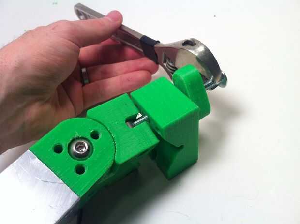 Observe que hay dos diferentes longitudes de tornillos de ajuste en el kit de accesorios. Aquí el corto unos se utilizan para bloquear contra la cabeza de la tuerca para apriete excesivo no causa la tuerca a su agujero de la tira.