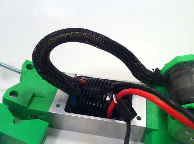 ** Es importante la polaridad del cable de la batería de la ESC. Es rojo +, negro es-. Los conectores de bala que vienen de la batería impiden una conexión inversa accidental, pero la ESC viene con los cables pelados. Así que tenga polaridad cuando los extremos de la soldadura en. (Ver la lista de materiales para los conectores de extremo que te recomiendo).