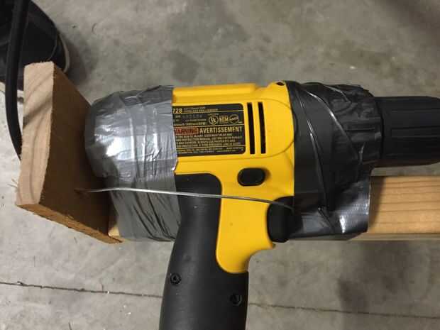 Poner el taladro en la pieza de madera para que el alambre se envuelve alrededor del gatillo del taladro. Usted puede poner cinta alrededor del taladro y de madera para que sea más constante. Obtener el tamaño de broca de taladro derecho y conectar el taladro a donde antes el pedal.