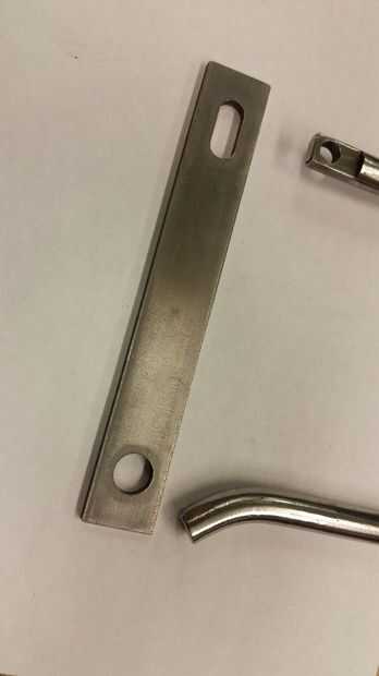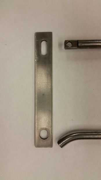 La parte más difícil es el agujero alargado. No es esencial que el agujero es alargado, podría ser sólo otro agujero que empareja, pero entonces la barra transversal tendrá libre movimiento arriba y abajo de la pieza U. Un agujero alargado permite que la barra transversal para sentarse cómodamente en el extremo de la pieza de la U, sin mucha manipulación alrededor.