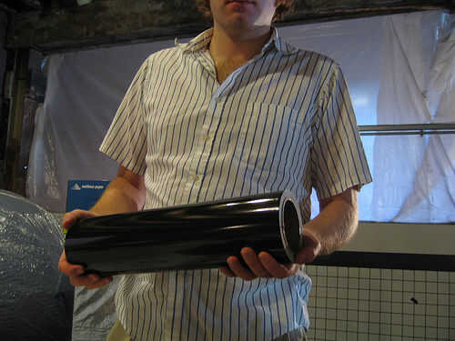 Una bicicleta promedio tendrá como máximo 6' x 15 para envolver completamente. Puede ser difícil encontrar una tienda de muestra dispuesta a vender poco. Conseguimos nuestro vinilo de gráficos de Beacon en Nueva Jersey (http://www.beacongraphics.com). Estaban tan entusiasmados con lo que estábamos haciendo con él, acordaron vender bricolaje, pequeñas cantidades del material. Información acerca de estos equipos debe ser en su página web pronto, pero se les pueden llamar al 1 800 762 9205 para obtener su propio kit de bricolaje.