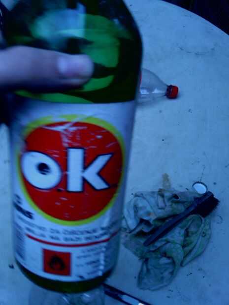 Oh sí, casi olvidaba, ejecutar pedales para 2-5 minutos, luego tomar agua y solo lavar la cadena y cassette (porque la gasolina se puede tomar hacia fuera plástico), después del lavado uso limpiar el trapo y a impulsión de cadena a través de ello... después de que uso el aceite (mejor aceite es de tienda de bicicletas, que utiliza en todas las motos) Lubrique la cadena y luego utilizar de nuevo trapo para sacar resto de aceite...