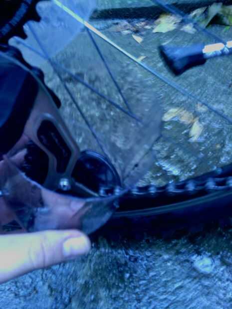 poner 1 pulgada de desengrasante y coloque la herramienta sobre la rueda trasera derailuer.