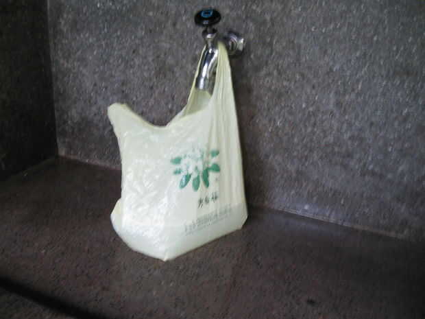 Lavandería de monedas es costoso y difícil de encontrar. Hice mi propio utilizando una bolsa de plástico resistente como un fregadero, pero pueden ser difíciles de encontrar. La tienda montaña en Asahikawa me dio uno en la imagen.