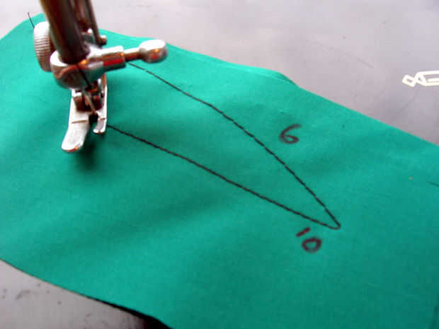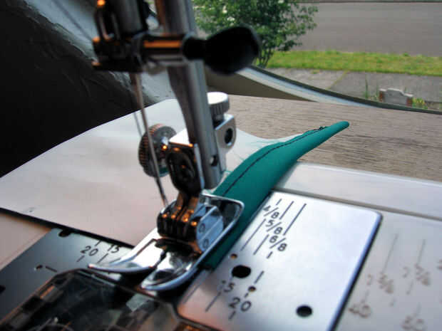 Enhebre la máquina y coser en trozos. En mi segunda foto en este paso usted verme Hilvanar juega con la longitud de la puntada y escribir configuración - el "6" corresponde a la más larga en mi máquina, 6 puntadas por pulgada, mientras que el "10" (10 CTS por pulgada) es una puntada más apropiado para este proyecto.