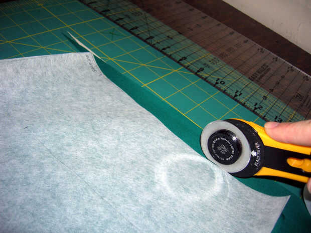 Como recortas las piezas por favor mantenga en mente que muchas telas impermeables no "curan" de agujeros de alfiler o aguja. Por ejemplo en la Gore-Tex utiliza el lado derecho de la tela (verde) sanado de un agujero, pero no el lado revestido (blanco). Como se puede ver en mi foto del corte no utiliza pernos para garantizar mi patron a la tela - pero has sido coser mucho tiempo y sólo tomar este atajo cuando estoy seguro de que funciona.