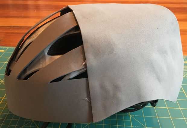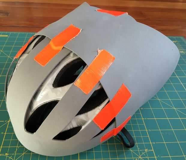 Una vez que la capa inferior es completa uso las tijeras para recortar cualquier espuma que sobresalen del borde de la parte posterior e inferior del casco. Asegúrese de que sólo es cortar la espuma y no cualquier otras piezas del casco como su correa de barbilla!