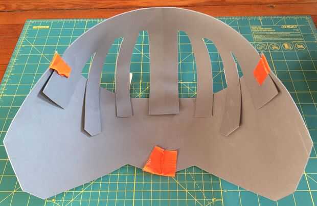 Comienzan a dar forma a las piezas de la capa inferior alrededor de su casco a partir de la pieza de espalda. La longitud extra en la pieza frontal obtiene escondida bajo la parte posterior. Utilice cinta para mantener temporalmente las piezas juntos. Verifique que la capa inferior cubre el borde inferior del casco. Una vez que estés feliz con el ajuste Retire la capa inferior de su casco y utilice pegamento caliente para unir ambas piezas juntas. Esta costumbre ser visto por cualquier persona así que asegúrese de utilizar un montón de pegamento para la fuerza.