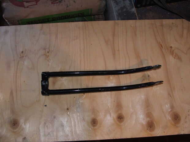 Para instalar la base del asiento y permitir que sea desmontable, un tocón pequeño del tubo de asiento post fue soldado a una placa que a su vez se suelda con autógena a través de la horquilla. Esto mantendrá la parte trasera del asiento base en el tubo del asiento original, y el frente se luego atornillar el marco con las punteras de la horquilla.