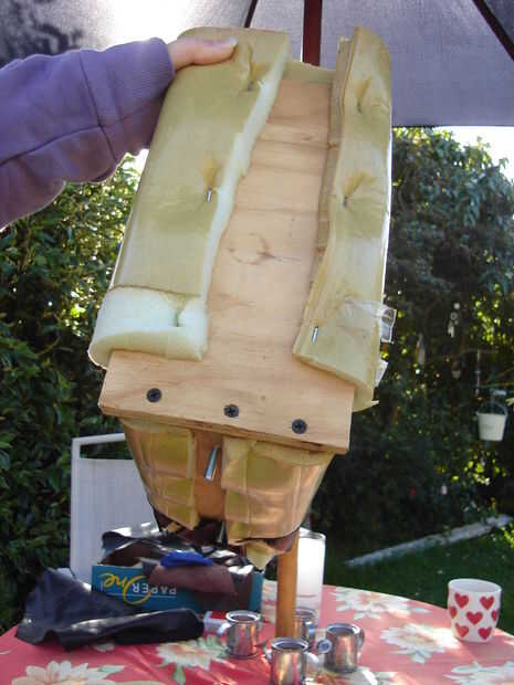 El asiento va para ser una sencilla construcción de madera, espuma de chatarra y desechos de cuero.