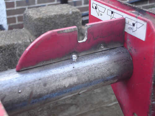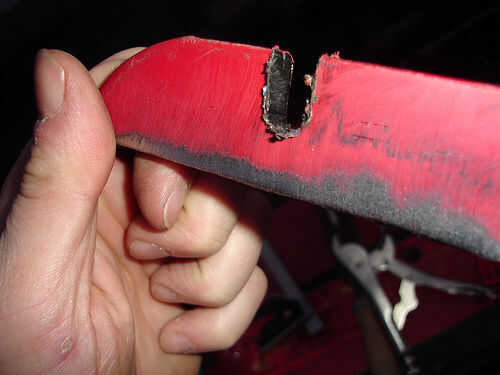 Foto 2. Superposición de una de las punteras de la horquilla en el acero para cortar. Esto le dará una indicación del tamaño y la forma de la pieza a cortar.