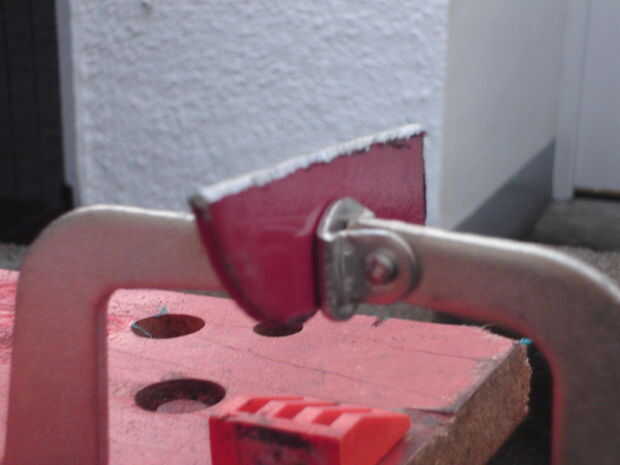 PIC 3. Ángulo de pulido nunca es exacto, por lo que el abandono no era exactamente lo mismo. He alineado el abandono en una abrazadera y usa el molinillo para obtener sus bordes idénticos.