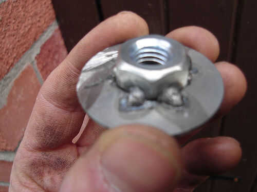 Foto 2. Quite el perno, por lo que te dejaste con una tuerca soldada y arandela como se muestra en la segunda foto.