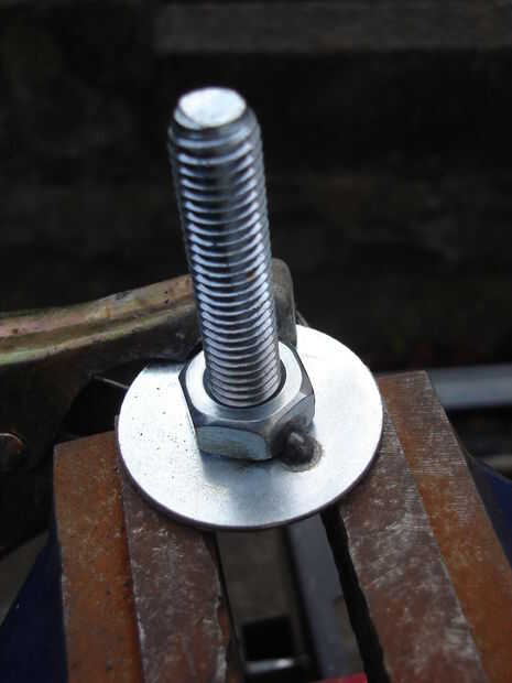 PIC 1. Montar un perno, la arandela y la tuerca tal como se muestra en la primera foto. Cada cara de la tuerca con la arandela de la autógena.