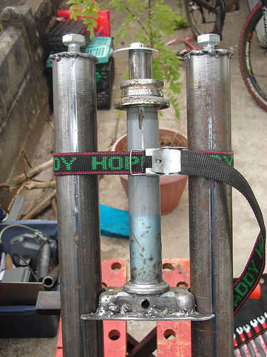 A continuación tenemos que hacer una madre. Si lo desea, puede cortar la cabeza del vástago de la existente. He elegido para hacer mi propia madre, como tenía unos tubos de acero que encaja dentro del tubo de dirección de la horquilla.