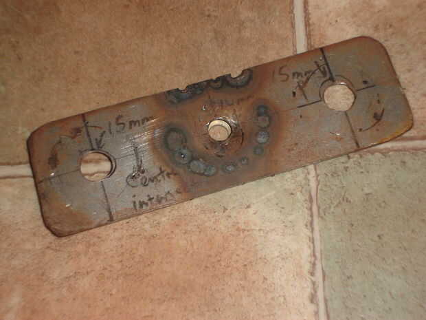 Estoy usando pernos de 10mm por lo taladré agujeros de 15mm en los centros de horquilla y sobre 10mm de agujero para el perno del vástago. No importa si los agujeros son más grandes que los tornillos, usaremos arandelas cuando estamos Ensámblela.