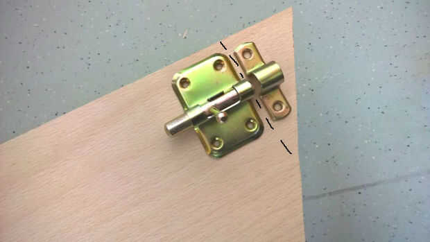 Para cerrar la puerta/mesa utilicé dos Deslice los pernos con cañón. Coloqué encima de la puerta y colocado de tal manera que el perno se bloqueará en su lugar utilizando la gravedad. porque los pernos de barril de la diapositiva no deban llevar ningún peso y tenían más puntos para unirla no utilizo cualquier madera extra para apoyar los tornillos. Cortar el exceso de los tornillos con la dremel.