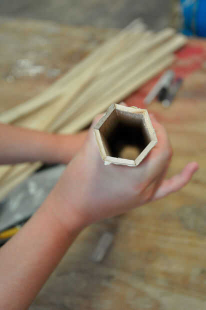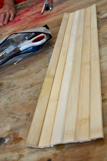 Revisa mi otros Instructable sobre la fabricación de hextubes de fibra de carbón de bambú. Si tienes gran bambú creciendo cerca, estás de suerte! De lo contrario, mirar alrededor para las tiras de bambú que son unos 2' de largo, mínimo 1" de ancho y aproximadamente 1/4" de espesor. Si todo falla otra cosa, haz poco agradable de madera dura (arce es una buena opción), tienen planeado a un 4-5mm de espesor. Es necesario calcular el tamaño de tus franjas basado en las dimensiones que usted necesite para su hextubes. El interior diámetro de la hextube debe ser ligeramente más grande que el diámetro del tubo que está reemplazando. Digamos que va a reemplazar un tubo 28,6 mm. El interior diámetro de su hextube debe ser ligeramente más grande-dice 30. Si utiliza bambú grueso 4 m m, el diámetro exterior de la hextube (plano a plano) es de 38mm. Si usamos un poco de matemáticas (o una calculadora en línea) sabemos que cada lado es 21mm. Es el ancho de nuestras tiras. Longitud debe ser unas pulgadas más de lo que necesitamos permitir el ajuste.