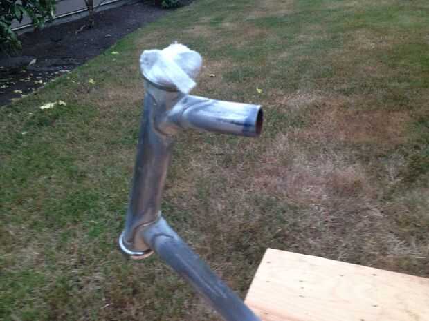 Start off by making 4 main cuts. Como se ve en las fotos de arriba, cortar por encima de la BB, el tubo superior y la parte posterior dos estancias. Asegúrese de dejar suficiente espacio para el bambú se deslice en y adherencia al metal. Asegúrese de que sólo haga estos cortes o bien estás en riesgo de perder la geometría del cuadro. Use un sawzal o una sierra para cortar estas juntas.
