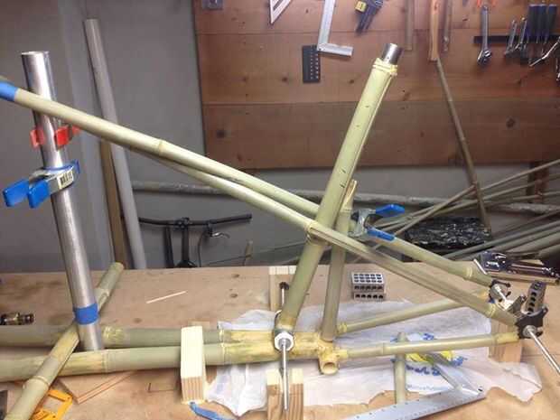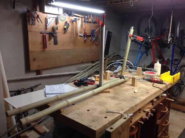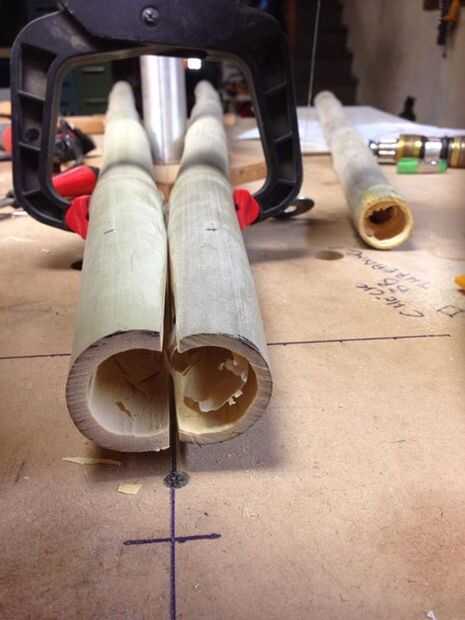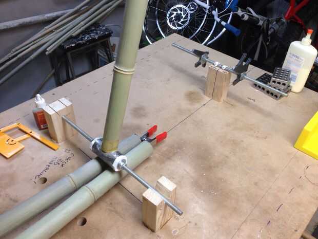 Las fotos de arriba son anotadas con consejos adicionales y explicaciones del proceso. El negocio real de pegar tubos y salidas, etc. se cubre en profundidad en el edificio un tutorial de bicicleta de bambú relaciona en la introducción.
