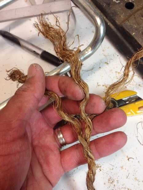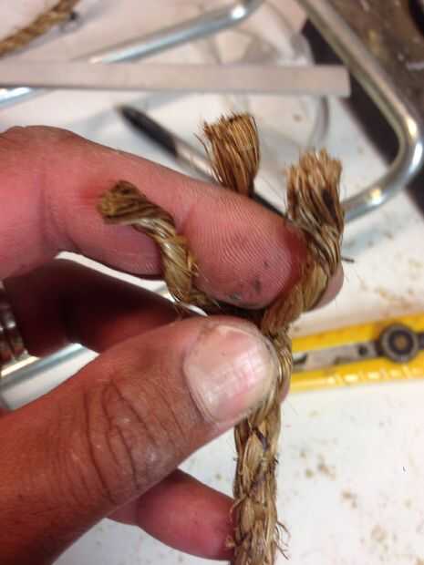 -En primer lugar separar una longitud de 3,5 pies de cuerda de Manila de 3/8" en sus paquetes de 9 filamento (ver fotos).