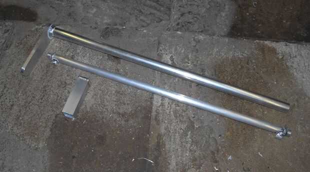 La varilla es simplemente un tubo con dos vuelta jefes soldados en los extremos, así como guías de cable. No quiero usar un super largo (tándem específico) cable de freno y romper el freno externo del cable como esto reduce la flexión y permite el uso de dos cables de longitud estándar con conector un poco en este tramo. Yo también pasar el cable del freno delantero abajo por el tubo de dirección para eliminar otra carrera del cable exterior y pulcritud.