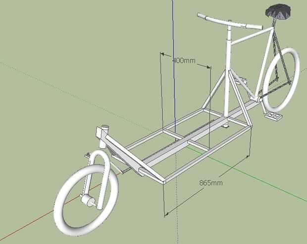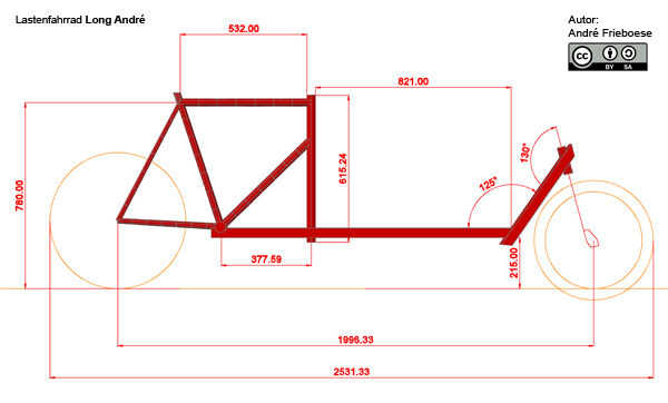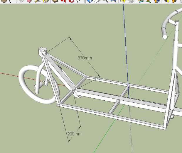 Las medidas de la bicicleta están en la imágenes y además les dejo el modelo en Sketchup hicieron en Alemania los amigos www.werkstatt-lastenrad.de