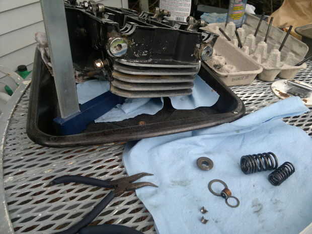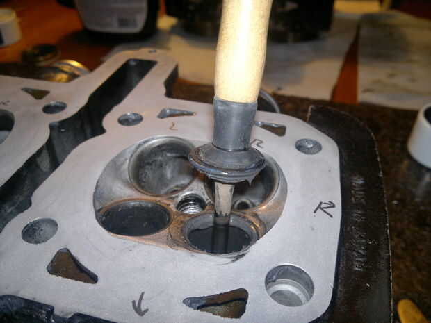 Las válvulas son un poco más fáciles. Sólo aplique algún compuesto lapeador a asiento de la válvula y la válvula de la torcedura y hacia atrás para volver a cortar un bosque agradable y mejorar el sello.