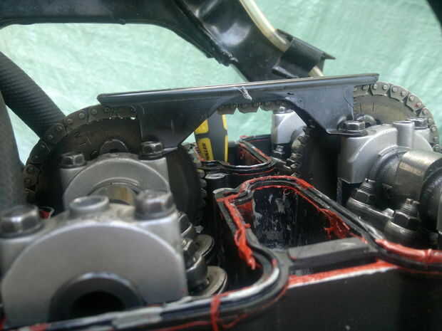 Tuve una Junta de culata que estaba en forma decente todavía por lo que acabo de limpiar para arriba y lo reutiliza. He leído un Consejo para pintar ambos lados de la Junta de culata con algún esmalte de motor para ayudar a crear un sello un poco mejor. No sé qué tan preciso es pero le di una oportunidad.