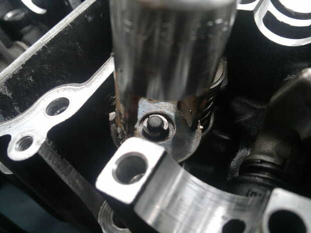 La EX500 utiliza balancines ajustables en lugar del cubo + calza setup estaba acostumbrado. No soy un gran fan de esto porque siempre siento que me voy por un poco al hacer ajustes. Básicamente la idea aquí es aflojar la tuerca de bloqueo, ajuste la posición del eje de balancín y vuelva a apretar la tuerca.