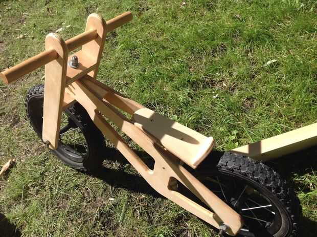Este fue un proyecto para nuestro sobrino dos y un mitad año viejo. Quería comprar uno pero fue sorprendido por el precio de un modelo de madera decente. La clave fue encontrar un conjunto de ruedas de rodaduras suave y luego diseñar las dimensiones alrededor de los ejes y el diámetro. El asiento es ajustable arriba y abajo y adelante hacia atrás.